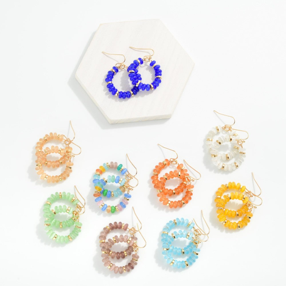 Candy Beaded Hoop Earrings Featuring Gold Tones